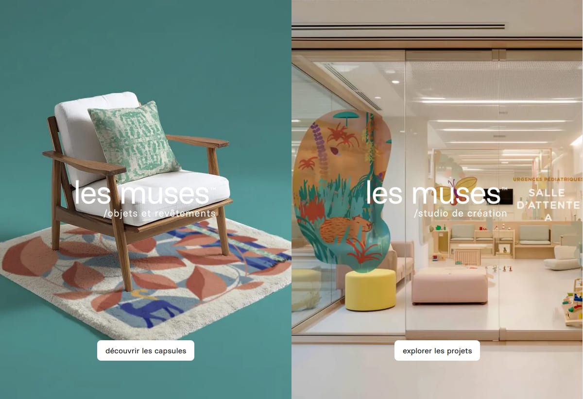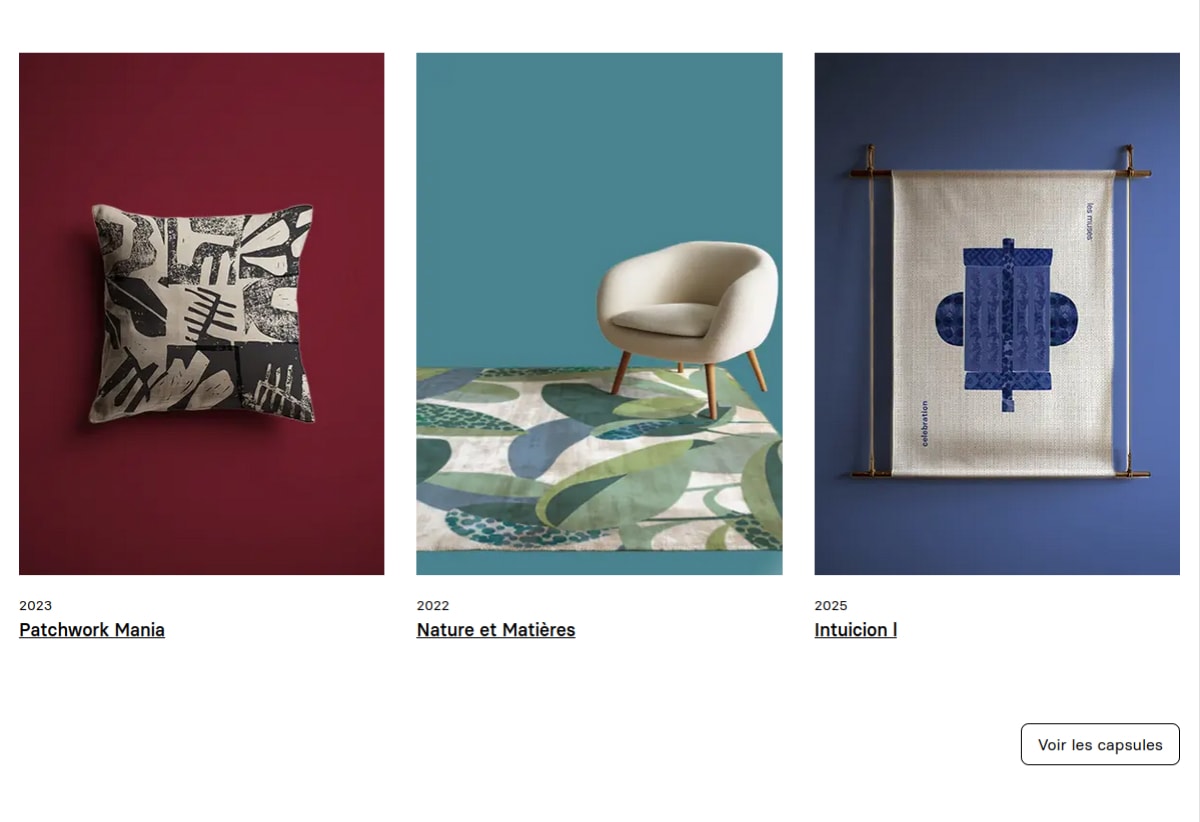 Le site propose une double entrée permettant d’accéder à deux univers distincts : Objet et revêtements, et Les projets, chacun avec sa propre identité visuelle et son thème couleur, afin d’adapter l’expérience utilisateur à chaque public.